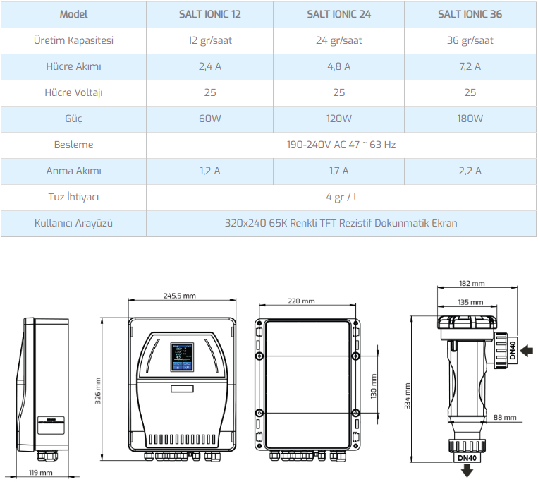 • Üretim göstergesi, tuz miktarı göstergesi ve hücre çalışma süresi göstergesi