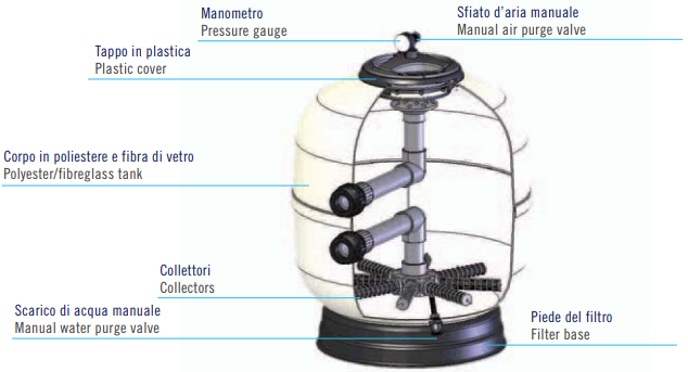 AstralPool Aster Ø 900 mm Kum Filtresi, geniş hacimli havuzlar için yüksek kapasiteli ve güvenilir bir filtrasyon sistemidir. Ø 900 mm çapıyla yüksek hacimli su işlemleri için uygundur; 30 m³/saat debisi ile suyunuzu etkin biçimde süzerek berraklığını korur. Lamine polyester ve fiberglas gövdesi uzun ömürlü kullanım sunar ve ekstra dayanıklıdır. Maksimum 2,5 bar çalışma basıncı ile güvenli işletim sağlar. Hava tahliye vanası, manometre bağlantısı ve vidasız üst kapağı sayesinde bakım işlemleri kolaylıkla yapılabilir. Hem kum hem de cam ortamlı kullanım seçenekleriyle esneklik sunar. Büyük özel havuzlar, site ve otel projeleri için ideal filtrasyon çözümüdür.
