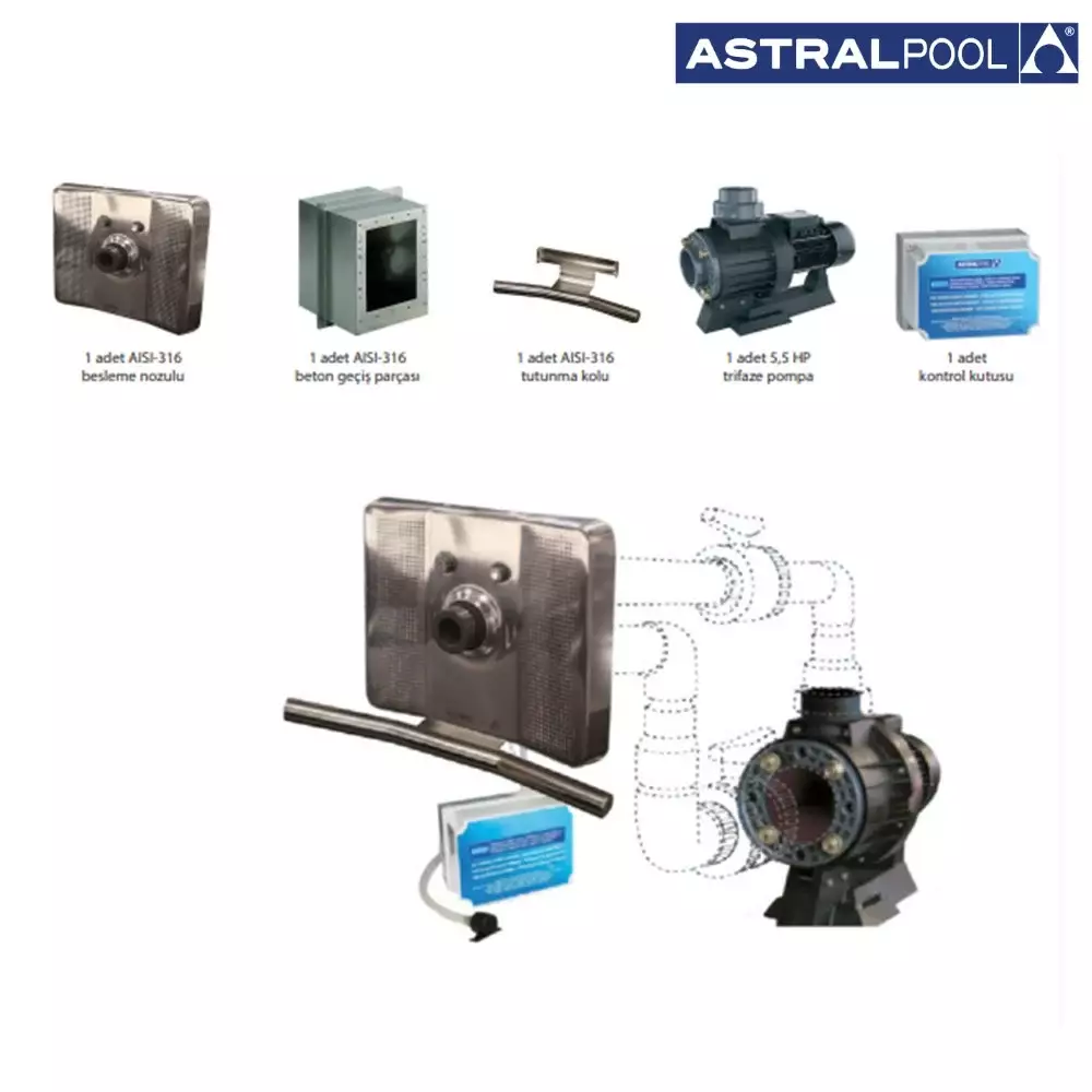 AstralPool Basic NL Karşı Akıntı Sistemi, betonarme havuzlarda güçlü ve ayarlanabilir su akışı sağlayarak yüzme keyfini profesyonel bir antrenman deneyimine dönüştürür. 5.5 HP gücündeki pompası sayesinde suyu yüksek debide geri iter ve kullanıcıya kesintisiz bir yüzme hissi verir. ABS gövdesi ve paslanmaz çelik ön yüzeyi uzun ömürlü kullanım sağlarken, pnömatik kontrol sistemi ile kolayca açılıp kapatılabilir. Dayanıklılığı, estetik tasarımı ve performansı ile hem ev tipi hem ticari havuzlarda ideal bir çözümdür.