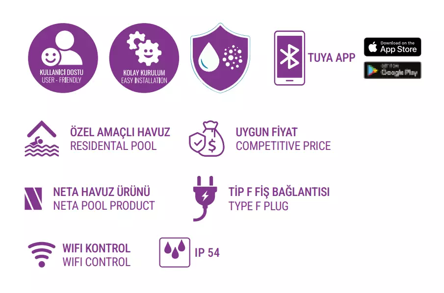 Uygun Havuz Hacmi: ~ 85 m³'e kadar