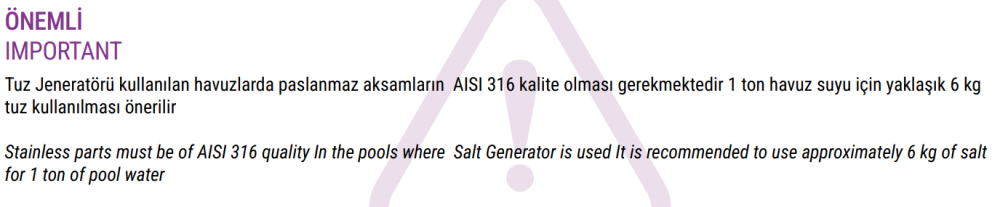 Fonksiyonlar: Akış sensörü, tuz seviyesi izleme, otomatik polarite tersine döndürme (self-clean)