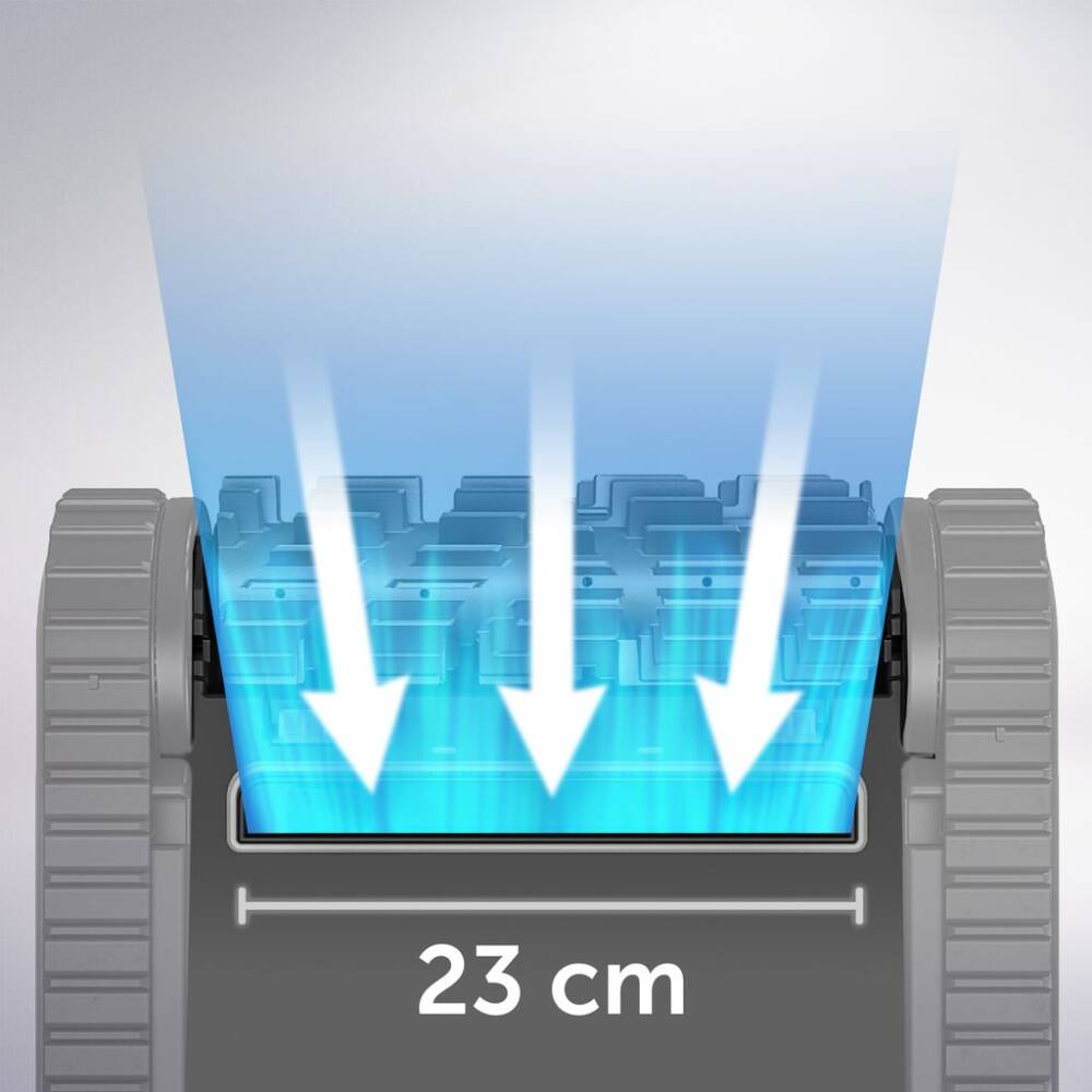 Üstten erişim filtre haznesi ve su tahliyesi özelliği sayesinde günlük bakım çok kolaydır. Akıllı sensörleri sayesinde havuzun her köşesine manevra yapabilir; 10×5 m’e kadar havuzlarda başarılı performans gösterir.