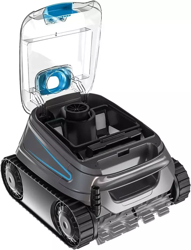 Zemin, duvar ve su çizgisi temizliği yapabilen bu robot, ~10×5 metre büyüklüğe kadar havuzları kusursuzca temizler. Üstten erişimli filtre haznesi ve şeffaf kapakla filtreyi kolayca görebilir ve temizleyebilirsiniz.