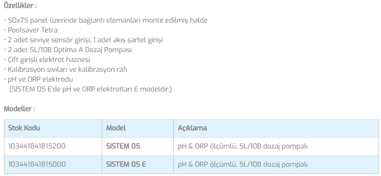 | Havuz Hacmi Uygunluğu | Maksimum 500 m³ açık ve kapalı havuzlar |
