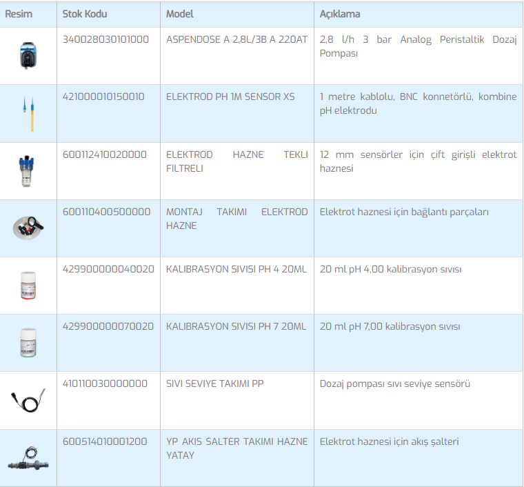 Dozaj Pompası: 1 adet 2,8 L / 3 bar Aspendose A tipi peristaltik pompa