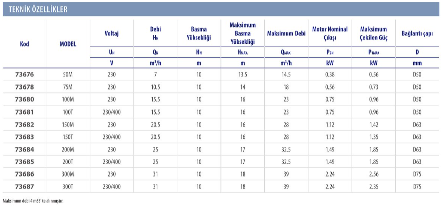 Basma Yüksekliği: 10 metre su sütunu (mSS)